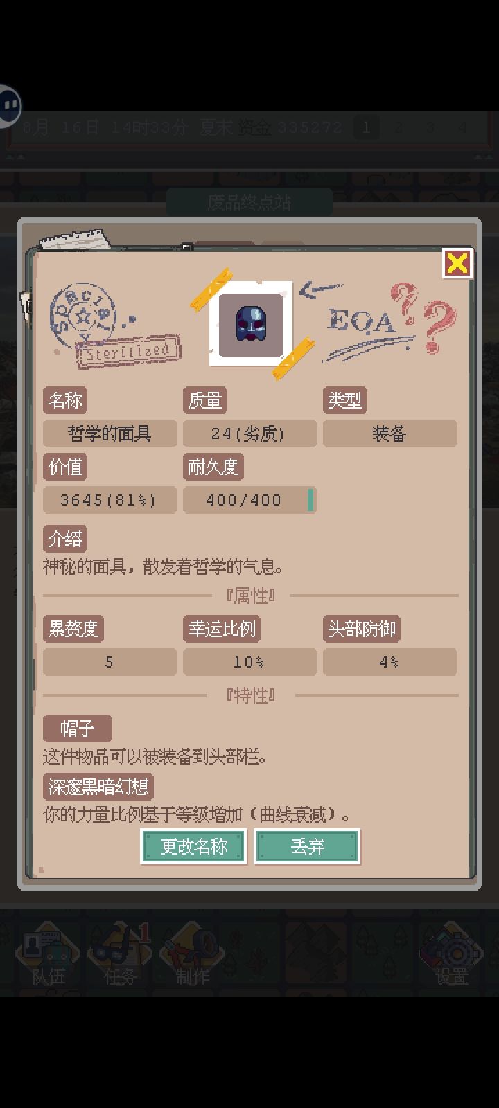 有幸运值加成,盐湖镇占卜那还有幸运值加成的饰品,等级高了实验室上好用,我现在找其他位置百分比加成的装备,找到了就发