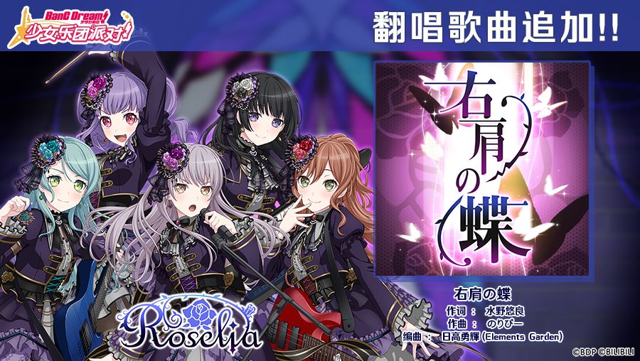 BanG Dream! 纪念日·翻唱歌曲追加——《右肩の蝶》