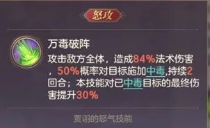 4.让贾诩自身怒攻具备引爆结算的能力和遗毒施加的能力,提高他伤害来源的全面性。