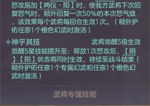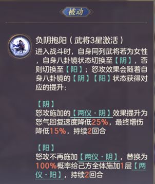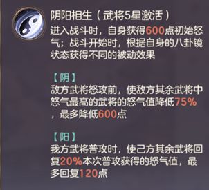 女性武将能够获得更强力的buff,除了改变怒攻的触发方式外,还能额外增加一些属性和龙魂值,以及少量回血。但是非女性武将仅仅只能改变怒攻的触发方式,500怒气一次50%触发的机会,按照期望来看和常规怒攻没什么区别,好处是有更高的上限,可能打出更多怒攻,但是也可能一次都不触发,总体赚的不多。