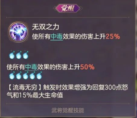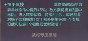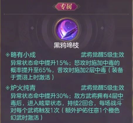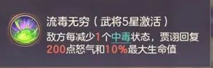 1.属性上的提升,贾诩施加的毒伤害直接提高,简单粗暴,还有一些额外的防御力提升、衰弱命中提升、生命上限降低免疫等效果,倍感扎实。