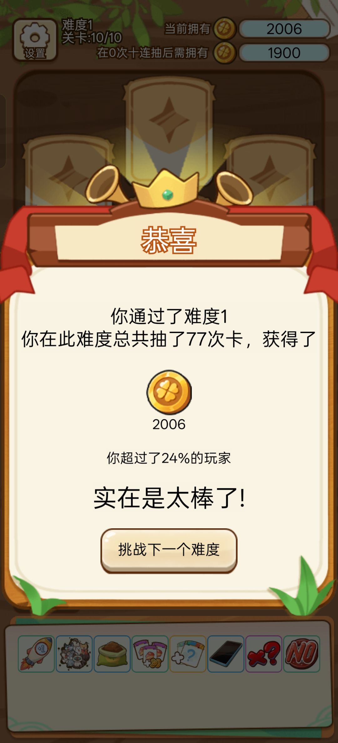 主要玩法:不停十连抽得分,然后在规定回合内达到关卡要求的分数。