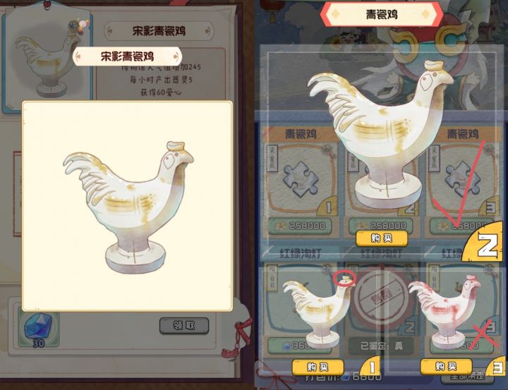 鬼市:青瓷鸡[小]和红绿陶灯[中]