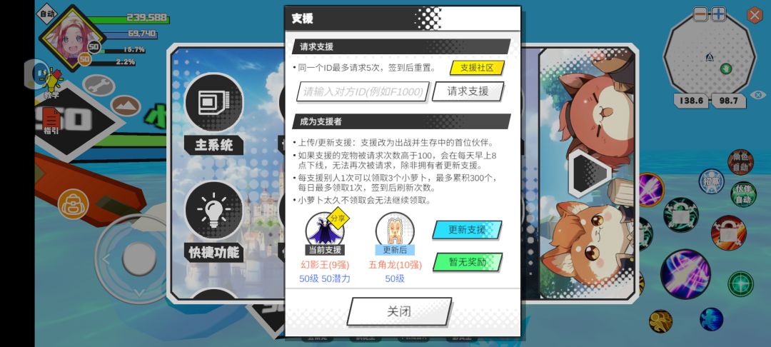 输入码点击请求支援,遇到打不过的副本,野王都可以请求支援