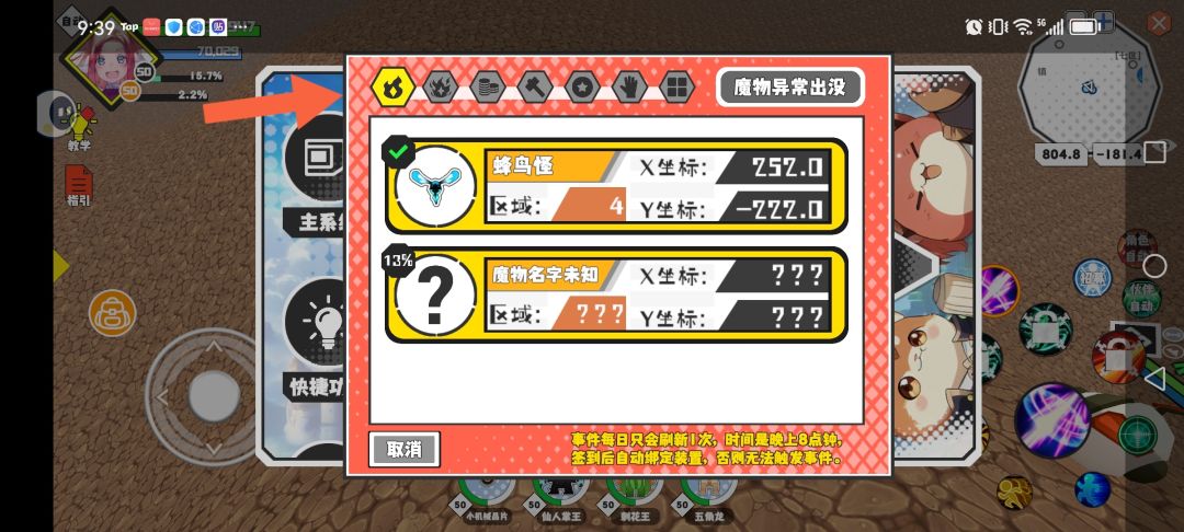 箭头所指第一个图标是猎场的标记