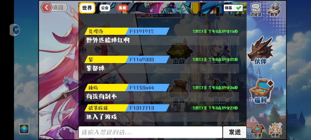 上面可以切换世界,公会,系统