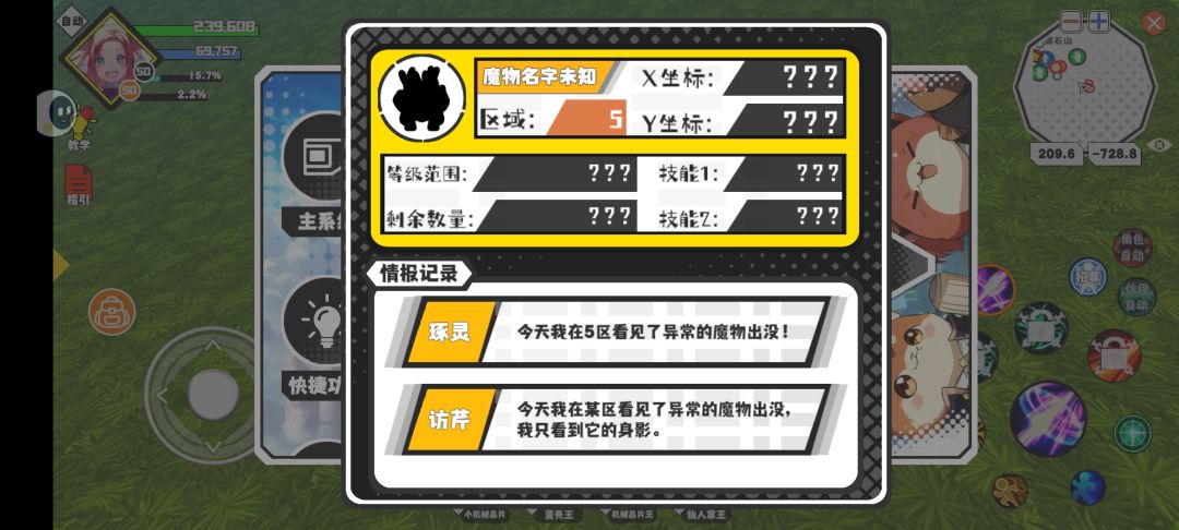 进游戏没话说,通主线,也就是过1-21区,打不过就召唤支援,(支援的作用就是叫别人的宠物,宠物实力根据你的图鉴分,可以解决大部分问题,不动坤坤说关安全)具体如图