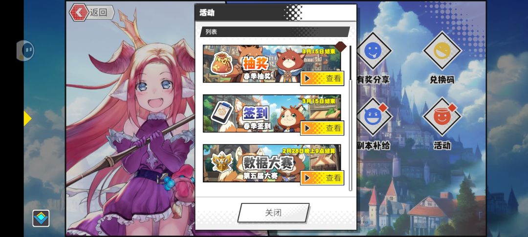 回主系统,点击出战