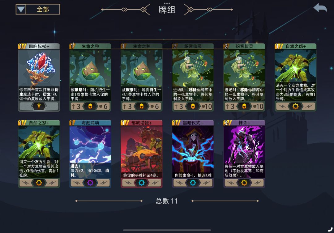 整个卡组的强度,就在自然之怒上,解场抽牌衍生回血,全靠这张卡,所以卡组不能太大,删干净卡,留强解场(抹杀,暴风雪之类的)和过牌就行了。