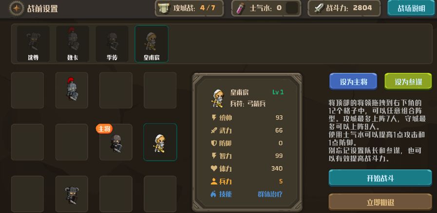 参谋:不必须设置参谋,但参谋的智力可以加成全体将士的防御。