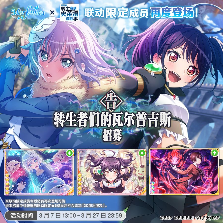 3月7日13:00,联动限定招募再次开启!「关于我转生变成史莱姆这档事」的联动限定成员将于本招募中再次登场!