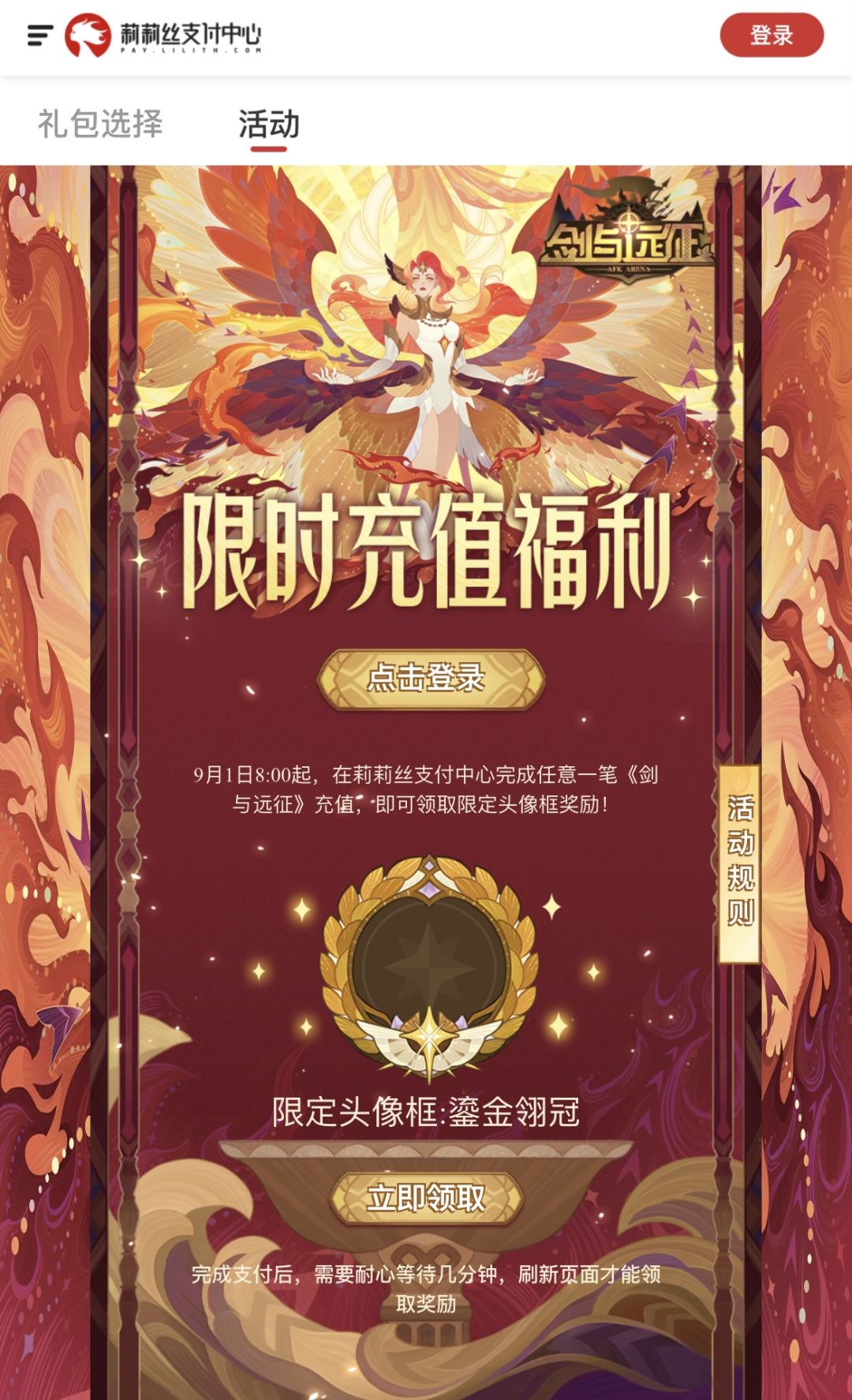 · 领取限定头像框【鎏金翎冠】 ·