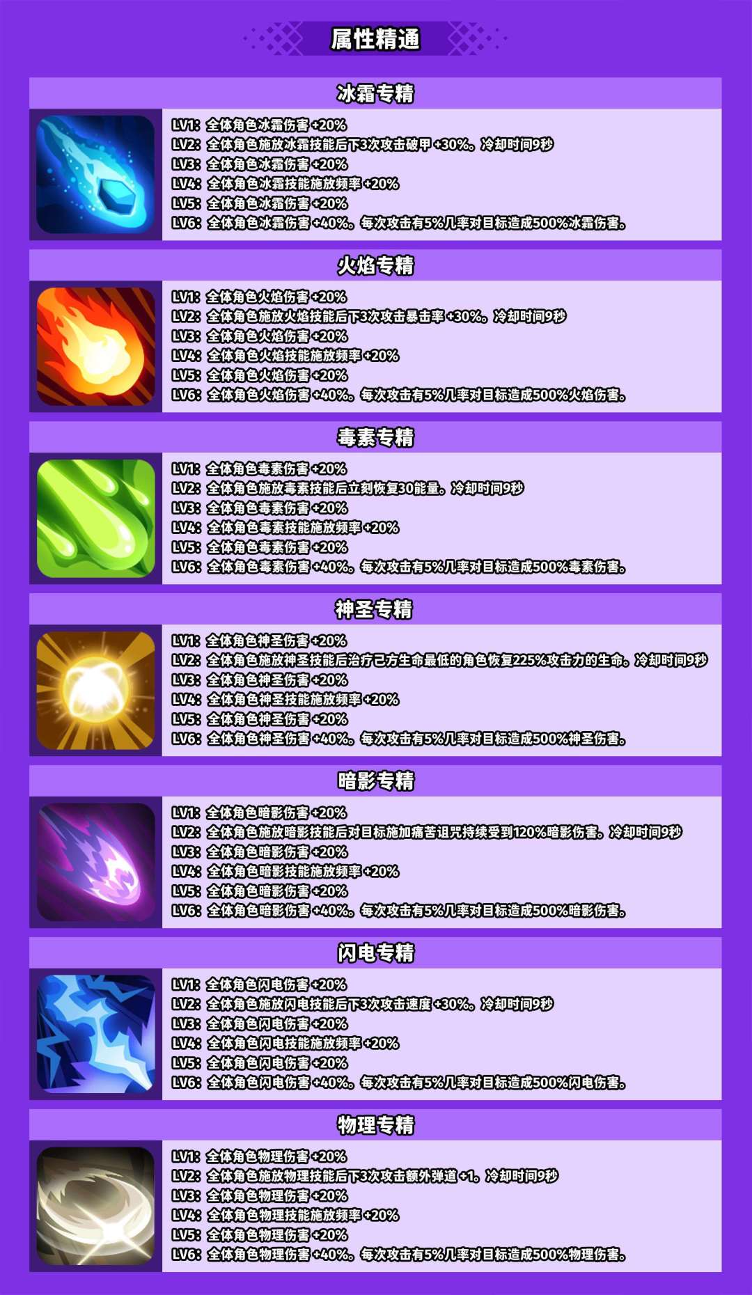 属性精通的选项,等级越高,属性伤害越强,同时还会获得新的效果,比如2级冰霜能增加破甲,2级火焰能增加暴击等。