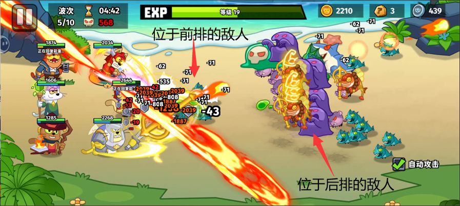 其次是巫师:王子,他的攻击是无限穿透的,升级还能让攻击反弹,能有效打到多个敌人。虽然他的技能释放频率不是很高,但是释放出来都能快速的清理杂兵。如果要让王子当主力输出的话,在选择三个后排角色出场时,可以让王子第一个出场,这样王子的位置会在中间。比起上下两个位置,中间的位置能让王子的弹幕尽可能的多打到敌人。