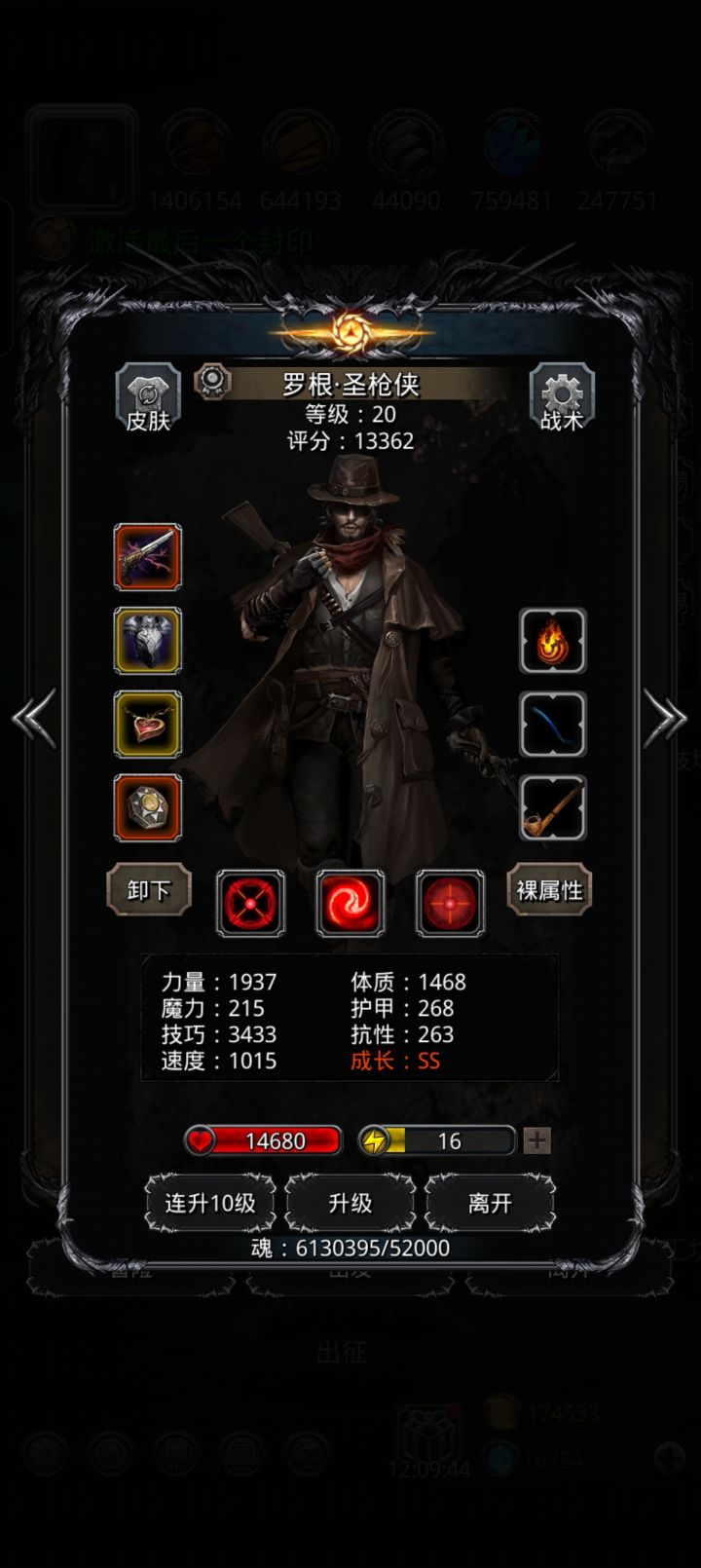 我主要卡剑魔属性,卡命中血量,独裁加技的情况下,保证cd3.6以下抗住老苏一击即可