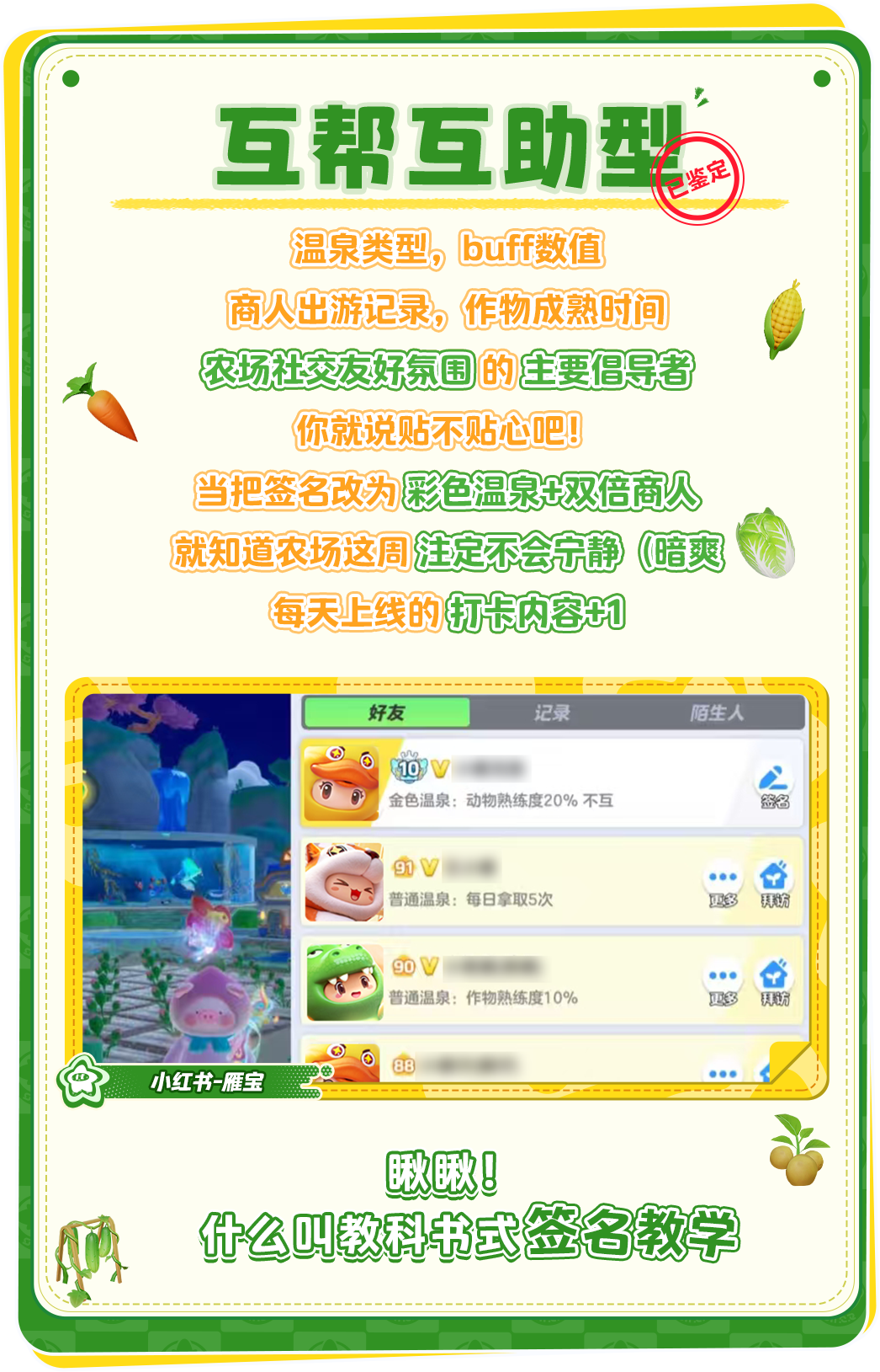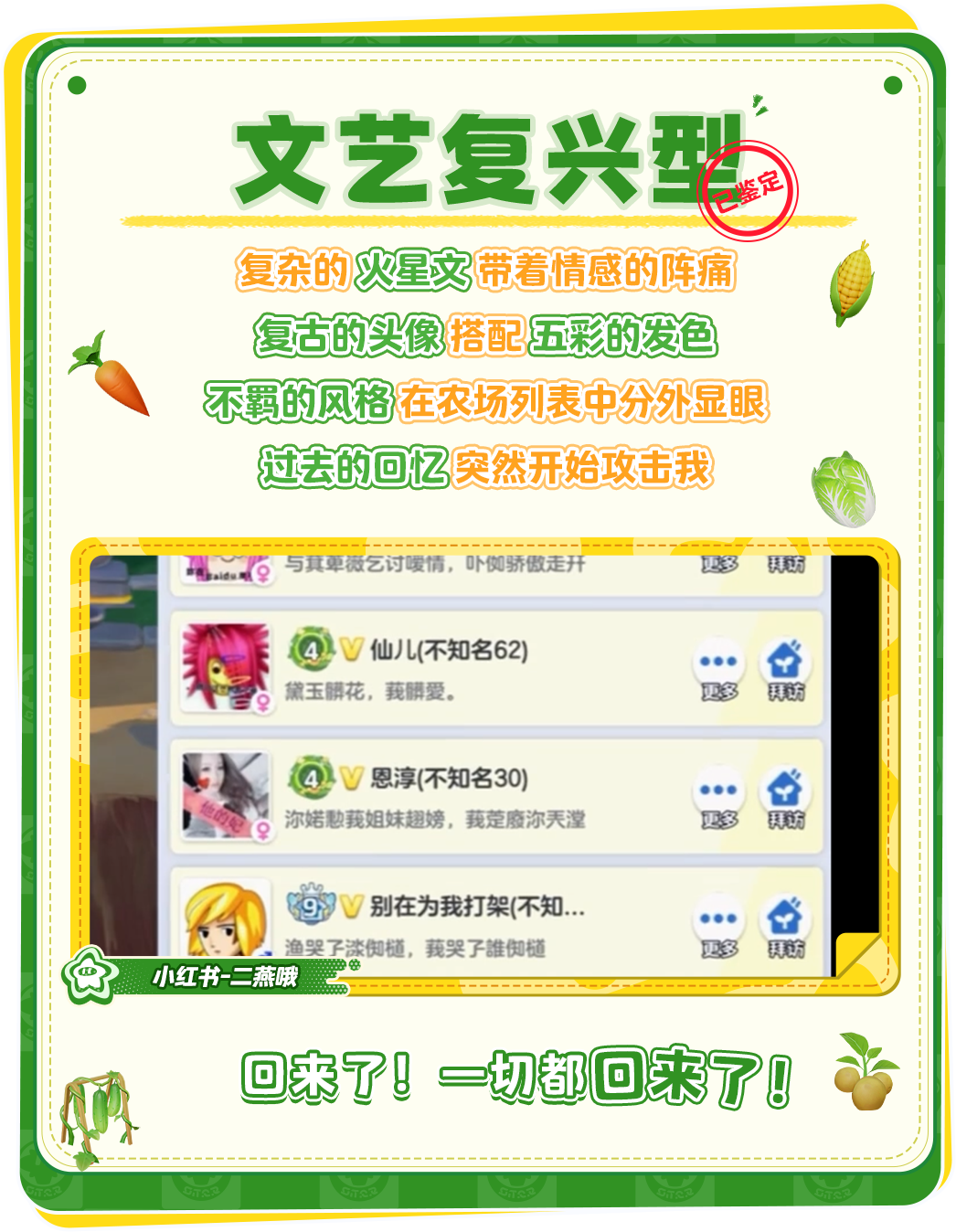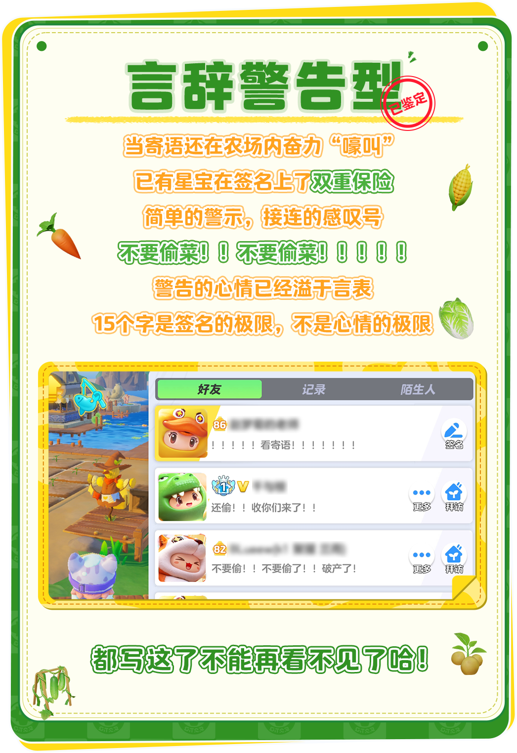 最近星妹夜观天象发现农场涌现一批"天赋型选手",他们白天Cos居民沉浸式过家家,半夜化身查寝阿姨搞突袭检查,社交签名一个比一个整活...星妹这就带星宝们鉴定一下这波网络热门星宝行为