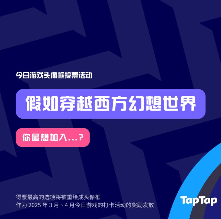 得票最高的选项将被绘制成头像框,作为2025年3月~4月今日游戏的打卡奖励~![[TapFamily1_启动]](https://img-tc.tapimg.com/market/images/25e1128b9d91965923bd2e4b379562da.gif)