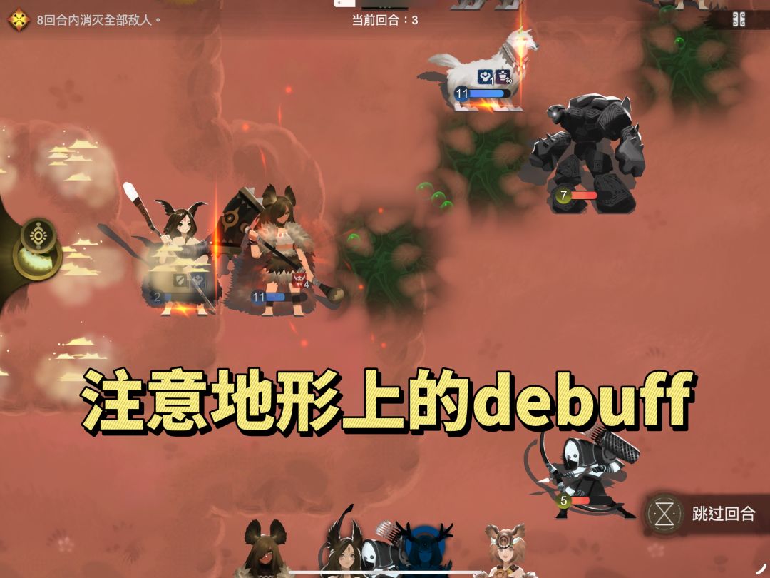 开始战斗前一定要先了解怪物站位分布、技能、移动距离及地形上有没有什么debuff陷阱;