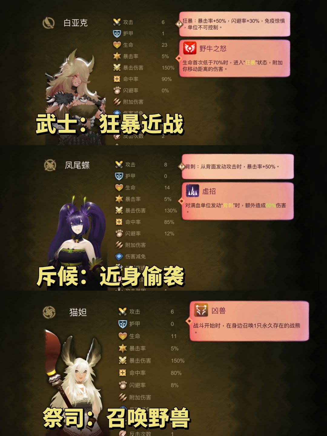 武士:擅长近战,狂暴后输出爆发,但需注意控制风险。