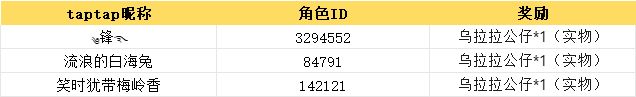 人气奖:点赞前3名的玩家获得乌拉拉公仔*1(实物)