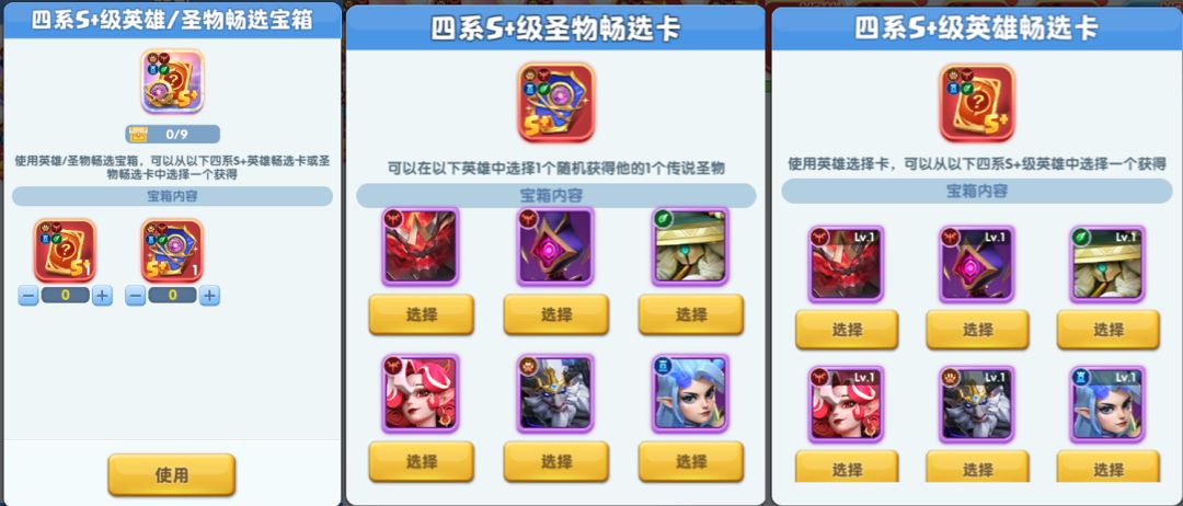 ·神迹宝藏3档产出的四系S+级英雄/圣物自选宝箱更名为四系S+级英雄/圣物优选宝箱