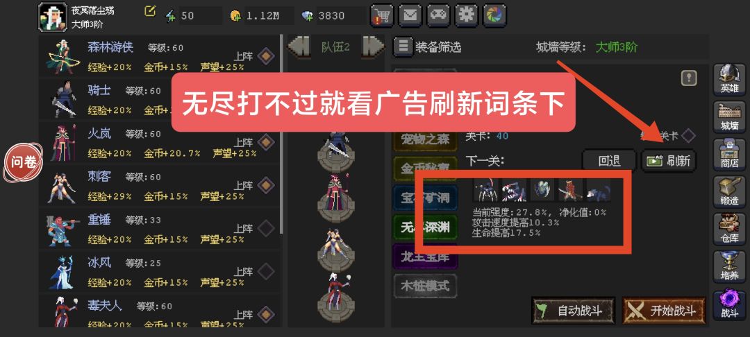 30关的时候会卡关一段时间,记得商店15分钟一轮刷新装备,有时间就卡着时间15分钟一轮买更好的装备过关…