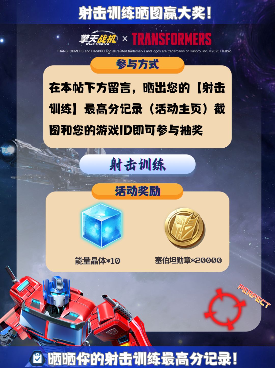 【活动奖励】我们将从所有参与的玩家中随机抽取10名幸运玩家,赠送能量晶体*10+塞伯坦勋章*20000