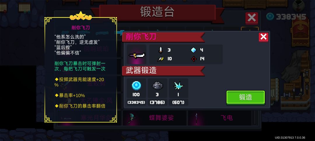 评论区有补充评论,看完帖子觉得还不错,可以再看看那个。武器展示武器介绍“他系怎么洗的”“削你飞刀,逆无虚发”“蓝后捏”“他偏偏不信”武器基础技能和词条介绍削你飞刀暴击时可弹射一次,每把...