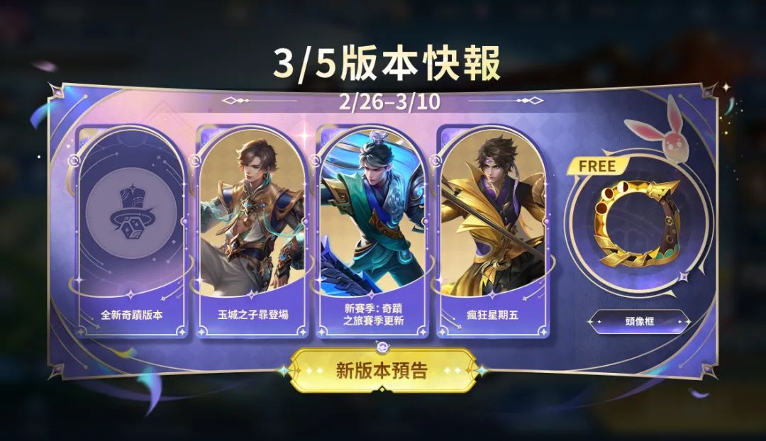 3月5日王者新版本,国际服【奇迹之旅】赛季更新!