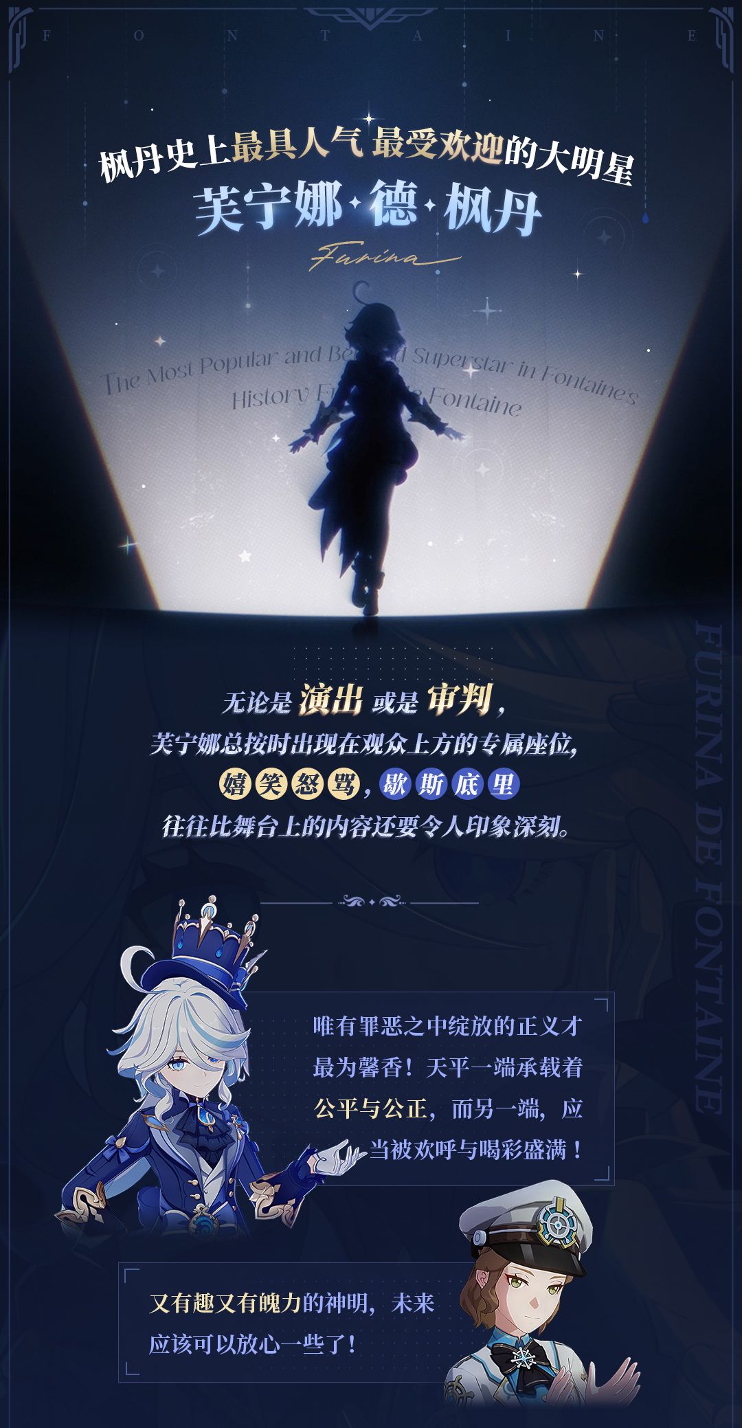 旅行者好呀!这里有一份关于枫丹家喻户晓的大明星·「芙宁娜」的小记,让我们一起来看看吧!