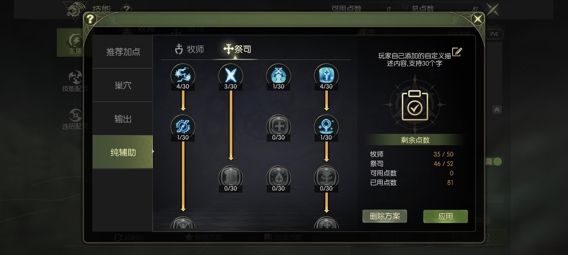 输出技能可以根据自己需要调整。但是因为辅助的关系,没办法点出神圣风暴。清怪需要靠十字。