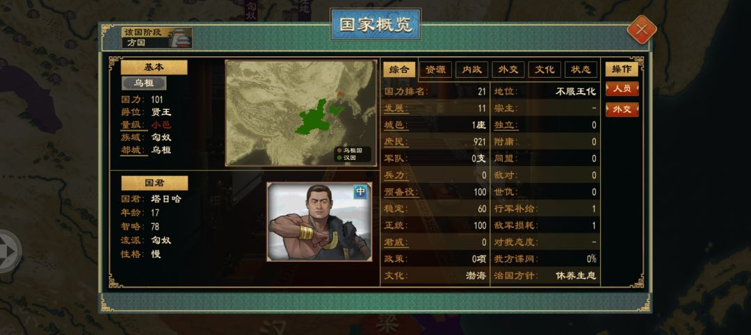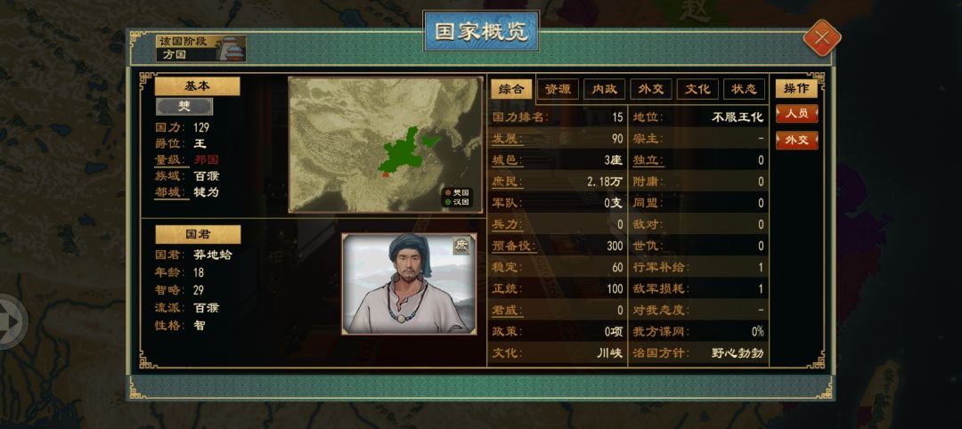 刚好的是,开局的所有百越,百濮,西域族域和部分匈奴族域国家都处于方国阶段。结合这个机制,我们可以在游戏中人为制造可游玩的方国阶段势力