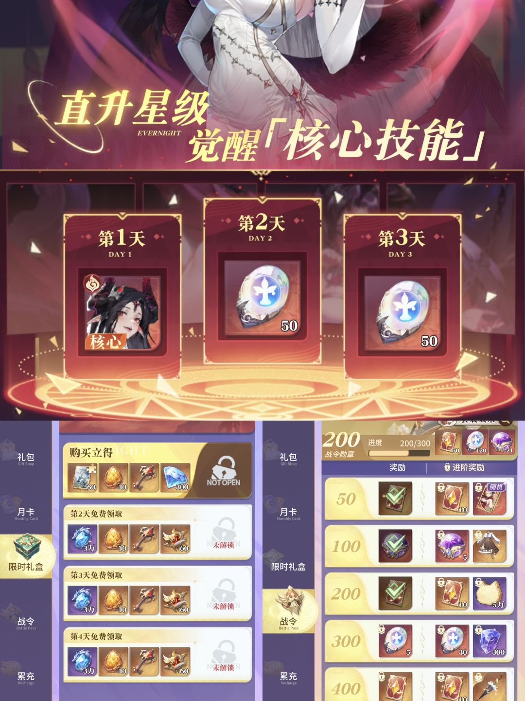 卡998档位获得累计充值礼包,拿传说核心角色。礼包方面,选择购买奢华水晶豪礼两次以及下方礼包两次,可以让我们共获得80次的传说级奖池,让我们至少可以出来。多位传说核心角色帮助我们快速提高战力,也方便后续的发展,并且还卡上了前面那个卡的八档位的传输角色,让其可以提升到四命。