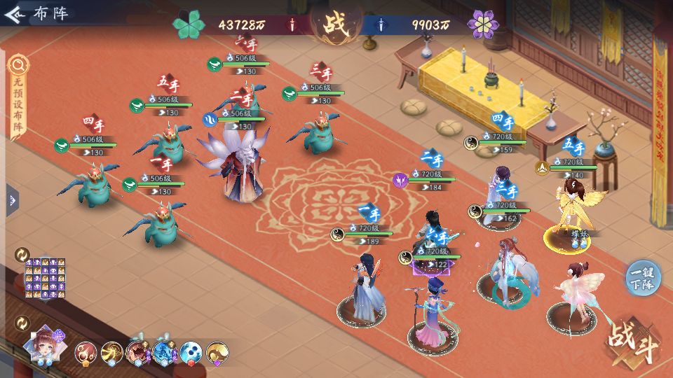 5号位子阴阳灵儿,神祝气气,精精/法法,运运,魂器满星选择速度减伤,1星专属(无专属也行),S3套,也可以换成风月如,神祝气气,敏敏,运道。