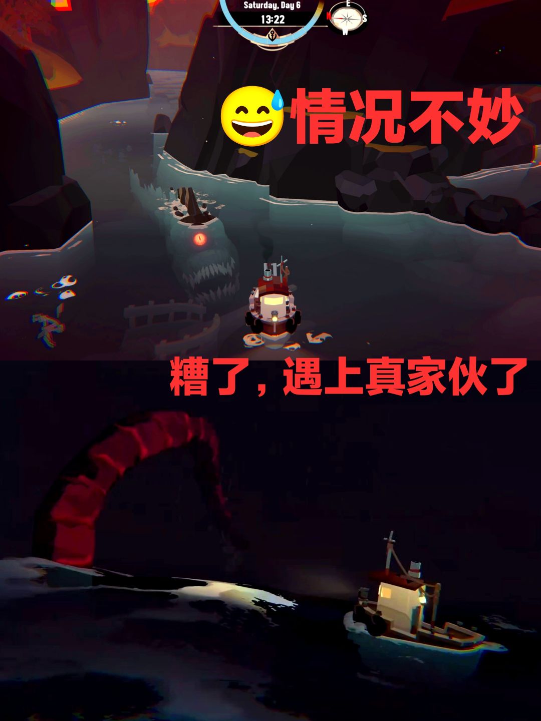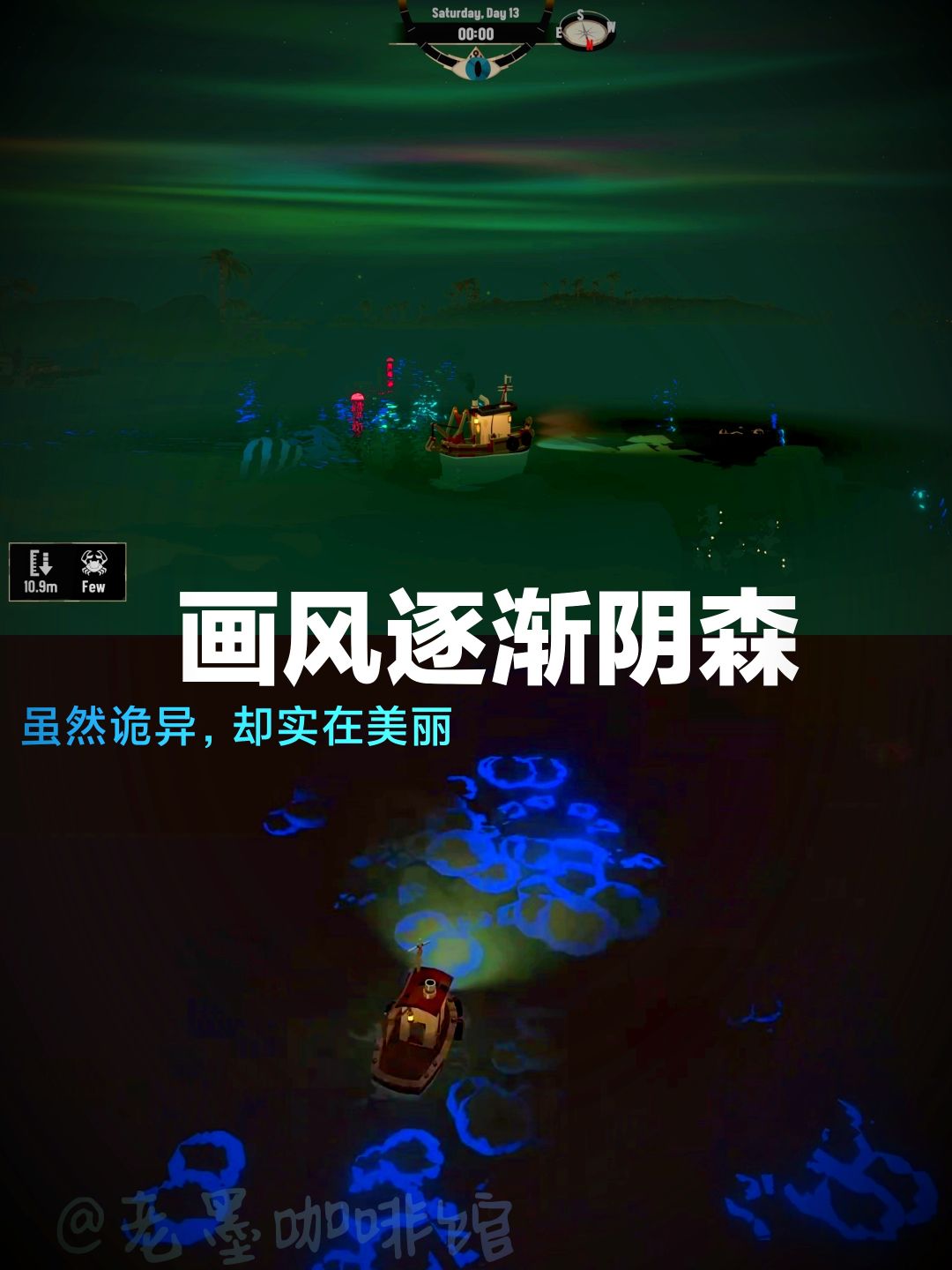 每当夜幕降临,屏幕上的指针睁开👁注视着你…海面不再平静,深邃的水波下仿佛有巨大的鱼影徘徊。