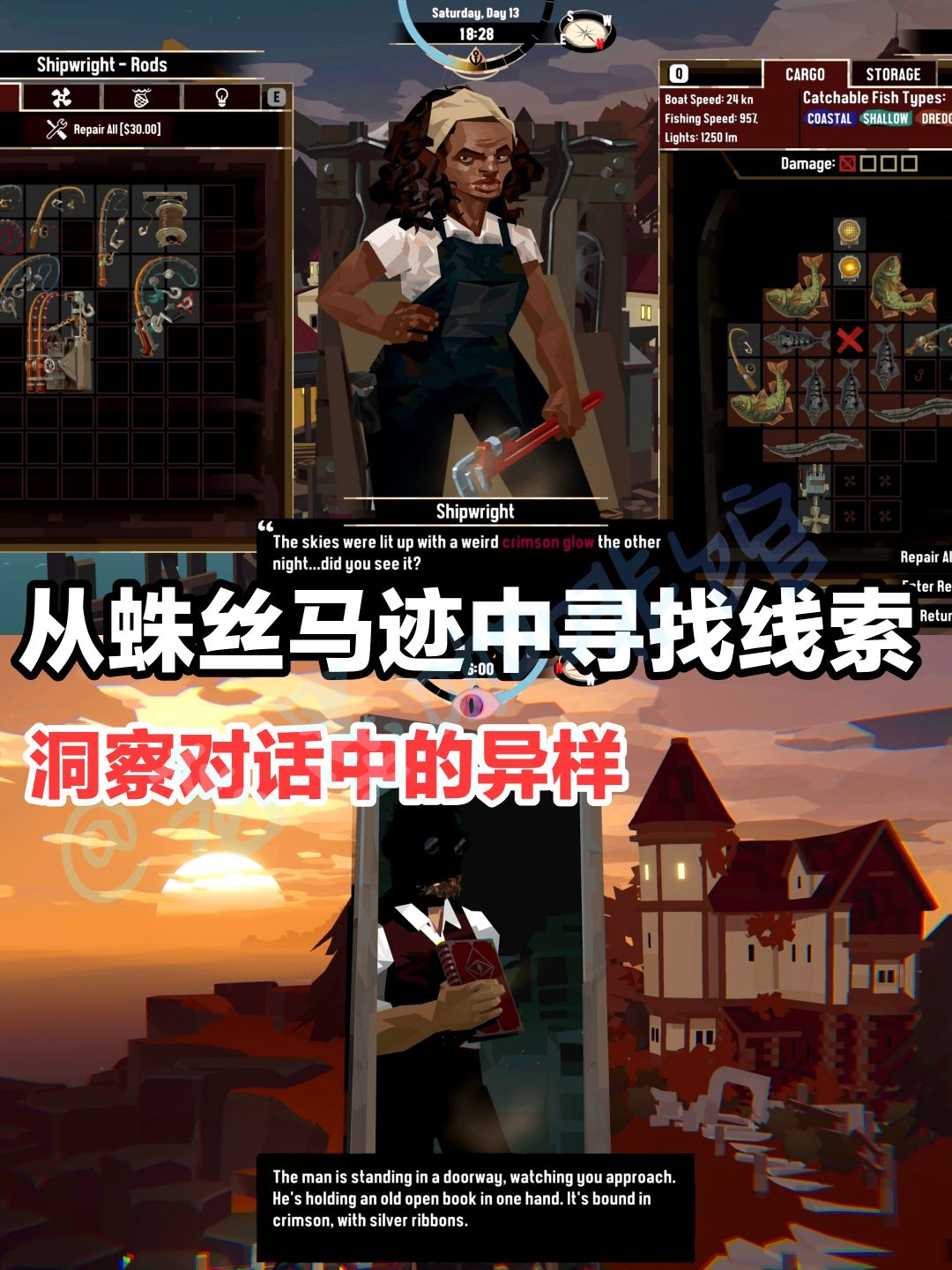 主线:在游戏中,出售渔获,升级船只,和各位镇民交谈聊天只是过程……最终,我们将会揭开那个深海中埋藏已久的秘密……