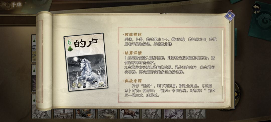 🏇的卢:非酋退散,欧皇入场券!判定非8点直接摸2牌,非洲人建议搭配"玄不改非,氪不改命"表情包使用。刘备:这马比我还能蹦跶!
