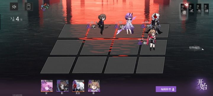 因为安是送的,这套阵容搭起来并不难。影和无念都能很好的提高安的伤害,这两个角色不能变动。影可以在开局新手十抽里不停的抽出来,无念在限定卡池获取。