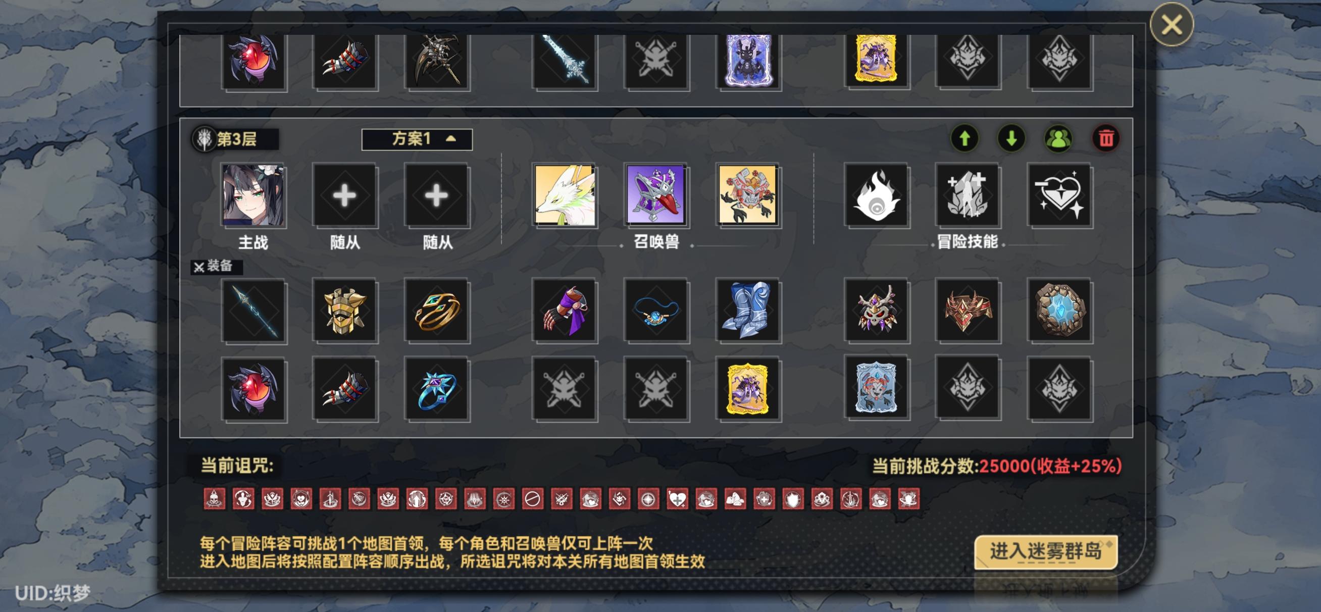 刚打过迷雾岛困难,给大家一个能过的阵容配比,这个不算萌新攻略只能是有一定基础但是不知道怎么配队的一个建议,深渊层数我打到351而已,重点就是凛冬魔瞳搭配攀冰鞋莽,和高达光暗队赌,我没有瑟图图没有零,就只能这么勉强配着用,高达,风男,三叶,亚里亚,神青满命,罗刹子4命,