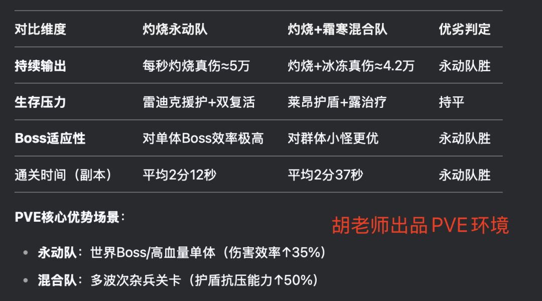 混合队在多场景更均衡,永动队在PVE领域仍具统治力