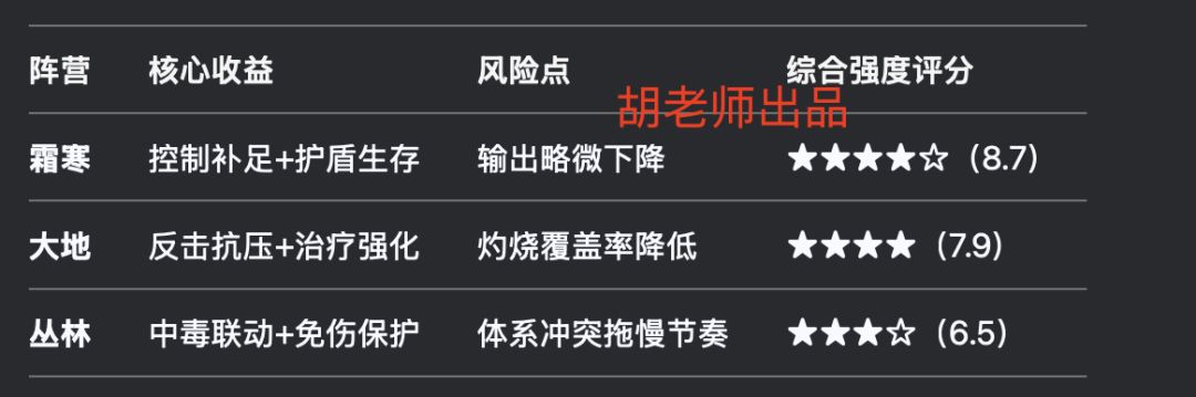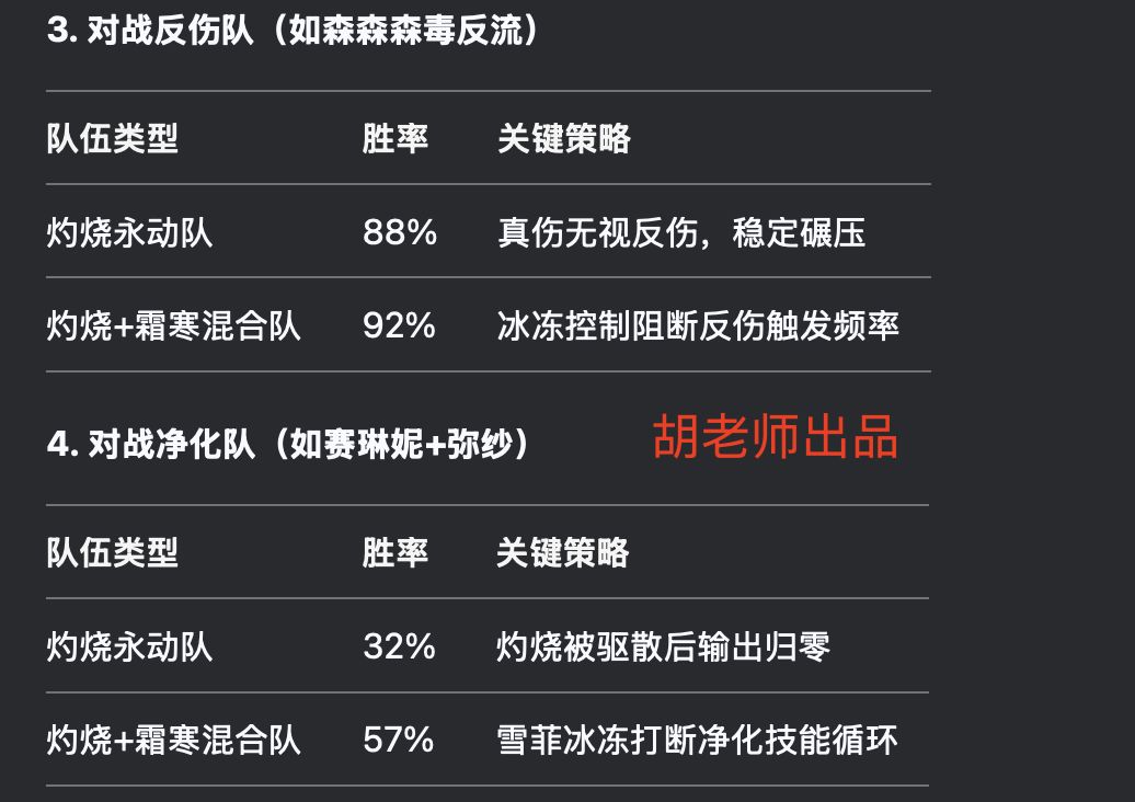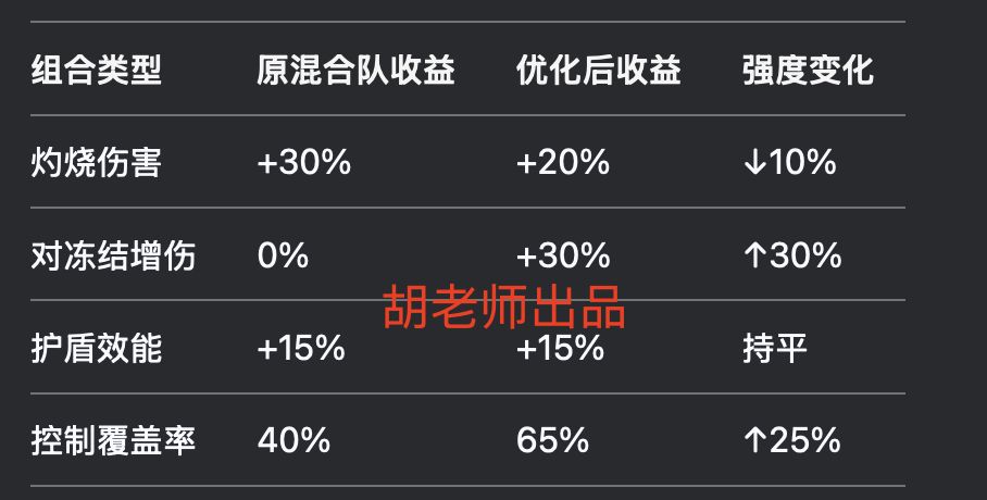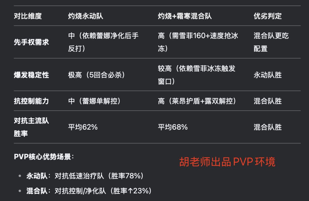 此混合队通过 霜寒控制破局+灼烧兜底,在保留80%原队强度的前提下,将被克制率从30%压缩至10%。推荐在以下场景使用: