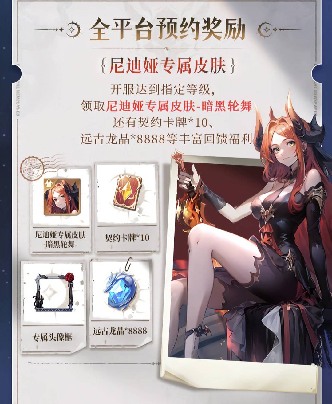 平台预约福利(尼迪娅皮肤+10抽+头像框+远古龙晶*8888)官方加码送了点钻石