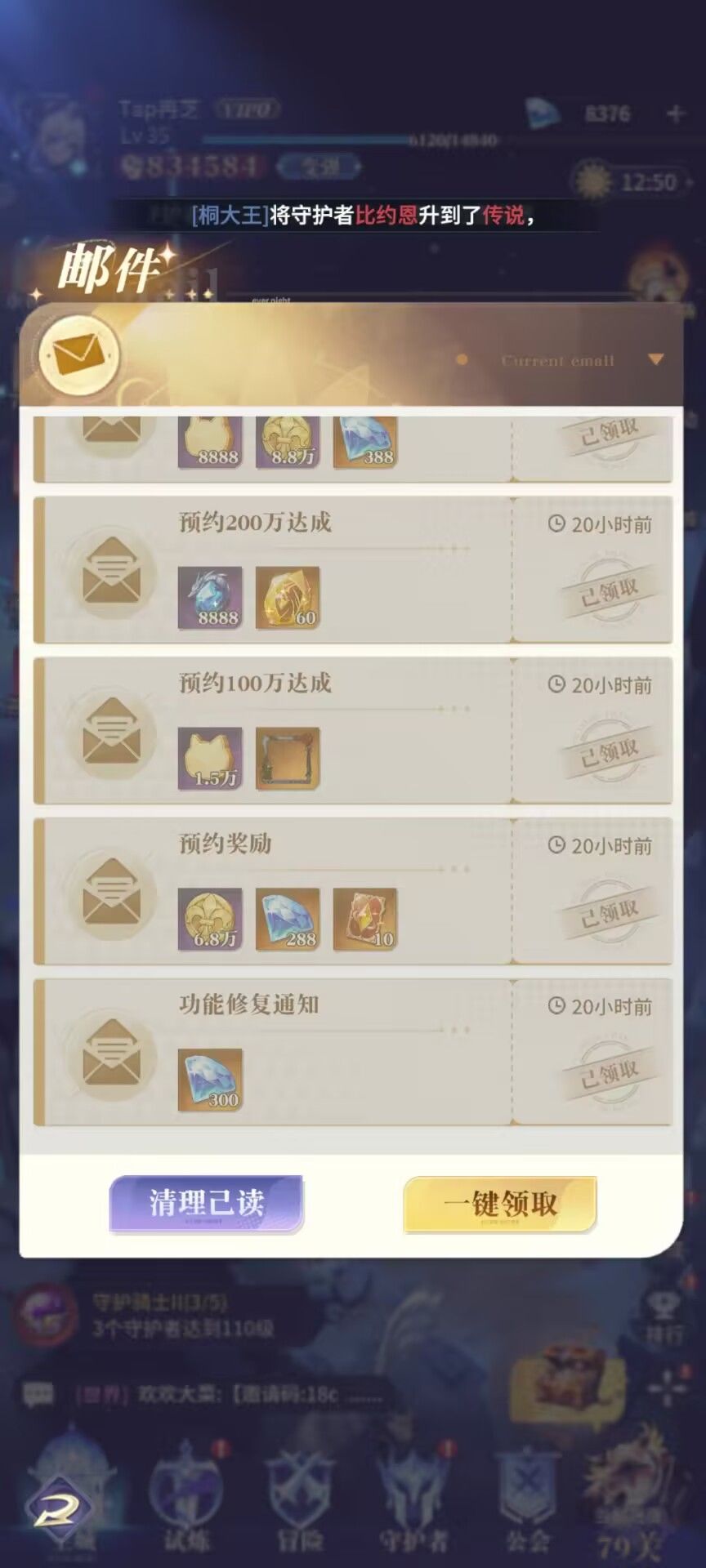 ②邮箱解锁了就直接领就行,没预约也是会有奖励的。抽卡资源直接全部砸进去,但是一颗钻石也不要用。