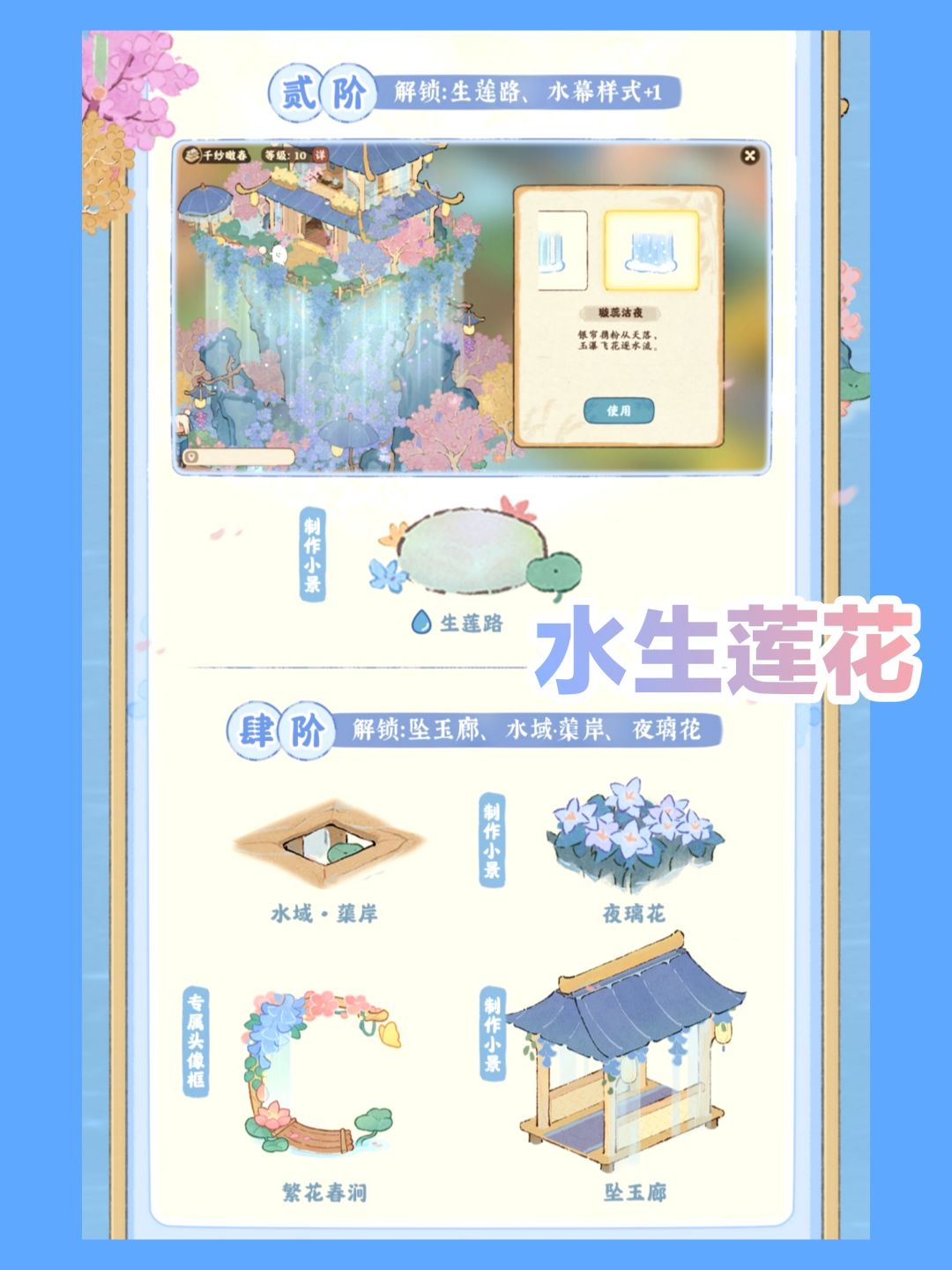 🍑二周年主题建筑、装扮、山遇将于3月6日更新~以莲花和瀑布为主题,如梦似幻,尽显古风魅力👍