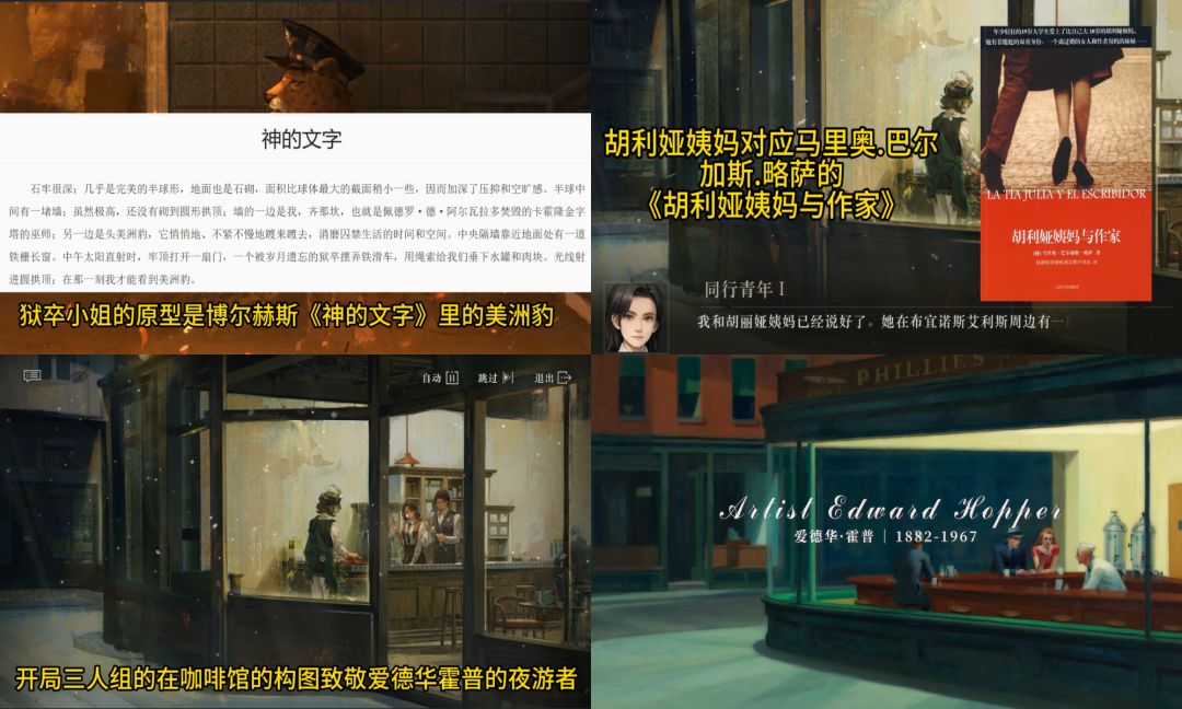 【NPC对应的现实角色】:1.胡利娅姨妈对应马里奥.巴尔加斯.略萨的《胡利娅姨妈与作家》