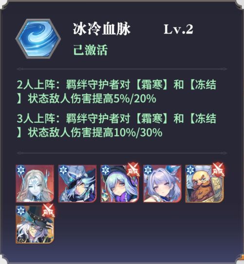 冰冻队由比约恩+露+丝黛拉+雪菲+弗洛基组成,这套阵容在满足集齐同源之力的情况下,还能凑齐四名冰冷血脉,获得对处于“霜寒”和“冻结”状态的敌人伤害提高10%/30%的效果。
