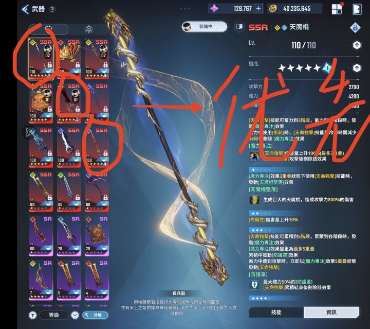 主角武器优先妖刀,风短,金箍棒,后可水书,火弓,火扇(火系增伤)。至于月影并不重要。拿恶魔城来说,暗风属性,妖刀风短一样打。新本光火属性,主角对应属性武器即可,主要是猎人,操作好用火c,操作一般用光战。目前猎人三大c,风火光都得搞,你不搞有些挑战图你过不去。其次破盾暗破盾用的最多,能夸属性作战,光老头是因为光属性的安德烈和其他俩c比还不够暴力,需要老头补点。火破盾建议优先抽一个图上的,时间战场常用。萌新奶妈优先风奶,回血回蓝破地形debuff.光奶建议斧子奶。这个游戏是个战力游戏,打困难本基本越不了5万战,尤其是手机半自动党,pc党操作细节多。游戏在哪,翻我别的帖子。