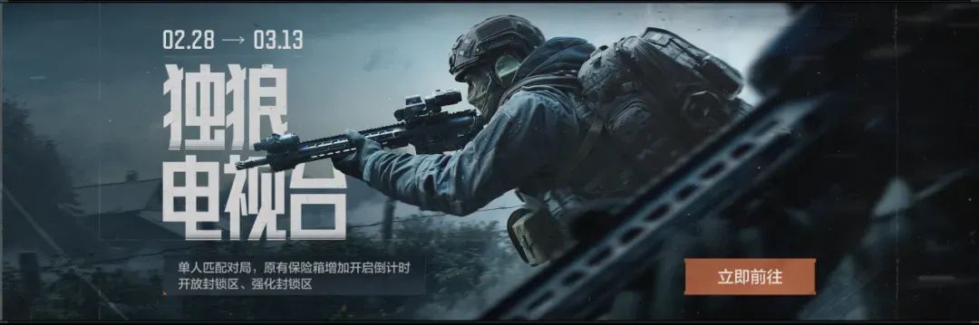 【独狼-电视台】封锁&强化封锁限时开启,活动期间开放【独狼行动】地图入口,在此模式中所有玩家仅可单人进入对局,一旦被淘汰将直接结束行动,地图中原有保险箱将增加开启倒计时。