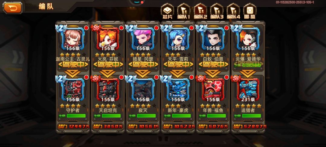 在这里提及一下,本游戏尽量选择五保一的阵容,即仅用一个主c(输出车+输出人物),其他的当前排抗伤,或者给主c上buff,提供功能性的作用