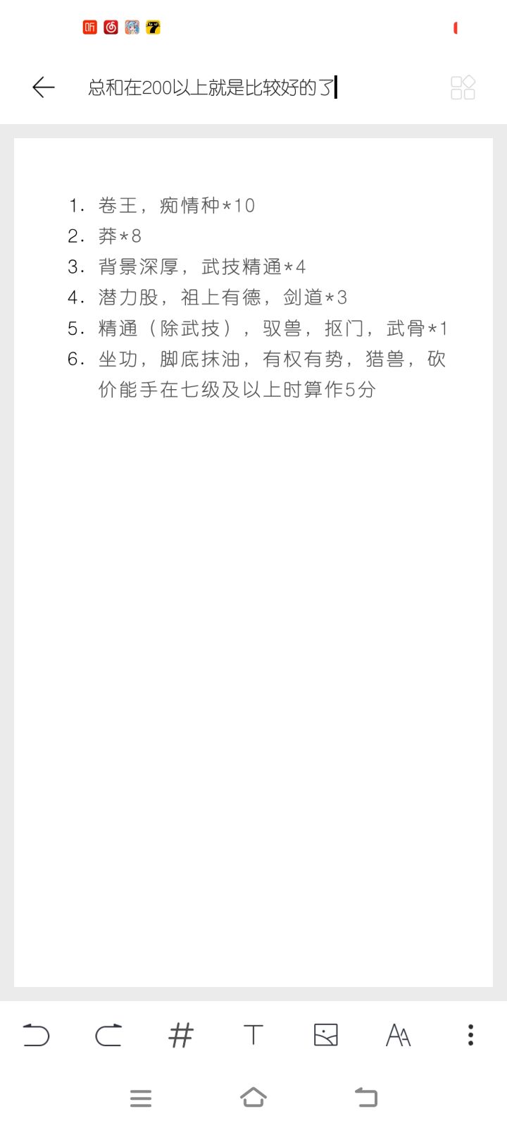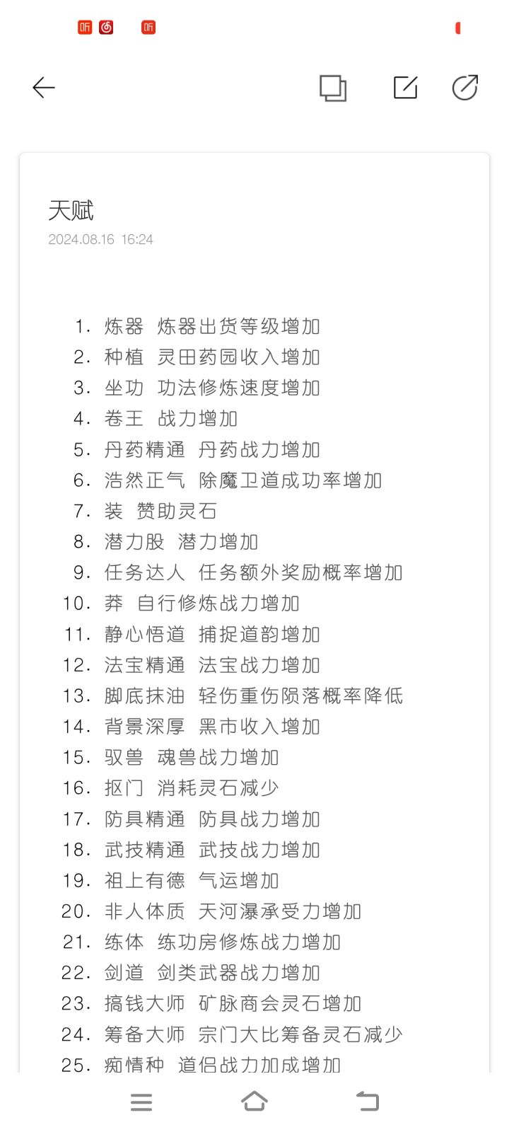 天赋大全,以及个人计算天赋分方式